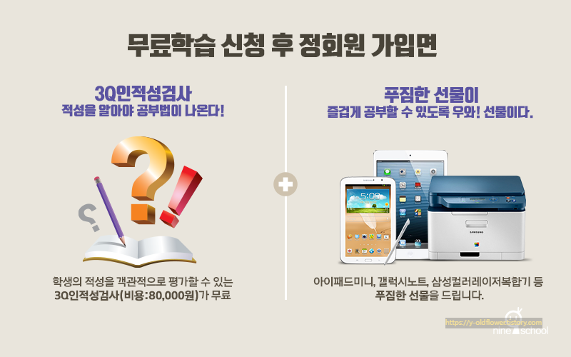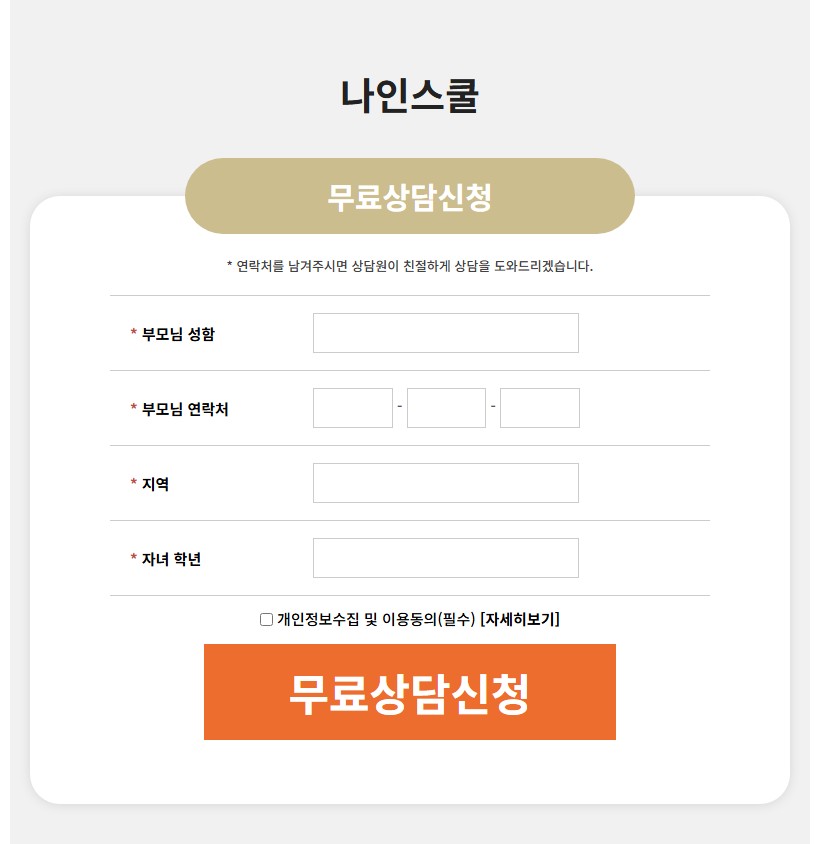 - 무료 방문 상담 & 시연: 현재 나인스쿨은 단순 온라인 체험보다는 전문 상담교사의 방문 상담을 권장하고 있어요. 직접 사이트 시연을 보고 아이의 레벨 테스트를 받아볼 수 있는 기회를 제공해요.